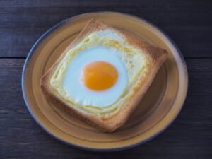 強火で焼くとパンが焦げやすく、卵が固まる前に台無しになってしまいます。表面だけが焦げ、白身が半透明のまま残ってしまうこともあります。逆に弱火すぎると、白身がいつまでも固まらず見た目が悪く、ぐずぐずと広がってパンの外に流れてしまうこともあります。加えて、火加減が一定でない場合は、外側だけ固まって中心が生焼けになるなど、均一に仕上げるのが難しくなります。火の強さは調理器具やパンの厚みによっても左右されるため、必ずしも同じ加減が正解ではありません。経験を重ねて自分の家庭のコンロやトースターに合った火加減を探すことが大切です。