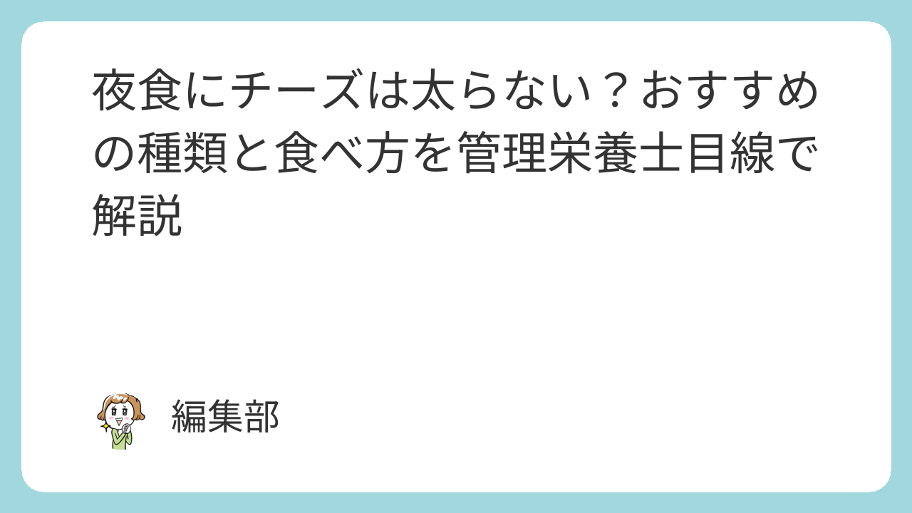 - チーズは種類と量を工夫すれば夜食にぴったりであり、夜中の空腹感を抑えながらも健康的に楽しめる食品です。