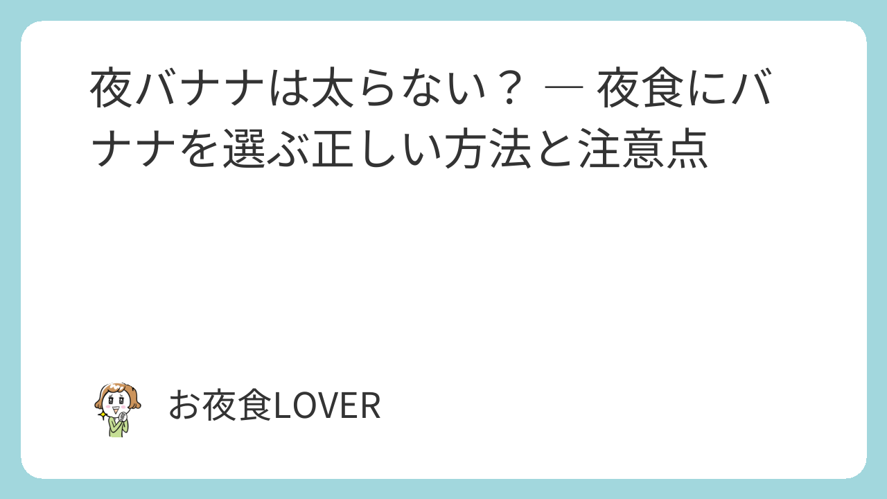 夜にバナナを食べるのは、正しい方法を守れば「太らないどころか健康的な夜食」になり得ます。ポイントは以下の通りです: