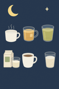 - カフェイン入りコーヒー・紅茶:覚醒作用で眠りを妨げる可能性があります。特に夜遅い時間帯に飲むと寝付きが悪くなったり、深い眠りに入りにくくなったりすることがあります。デカフェやハーブティーに切り替えるのがおすすめです。