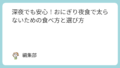 次に夜食を選ぶ際は、ぜひこの記事を参考にしてみてください。ブックマークしておけば、夜中に迷った時の助けになるはずです。また、家族や友人と共有すれば健康的な夜食習慣を一緒に作るきっかけにもなるでしょう。