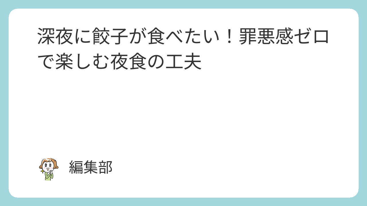 深夜に餃子を食べたいと思ったときは、今回紹介した工夫を思い出してみてください。自分なりのルールを決めて取り入れれば、夜食はストレス解消や心のリフレッシュにもつながります。ぜひこの記事を保存・シェアして、次の夜食の参考にしてくださいね。