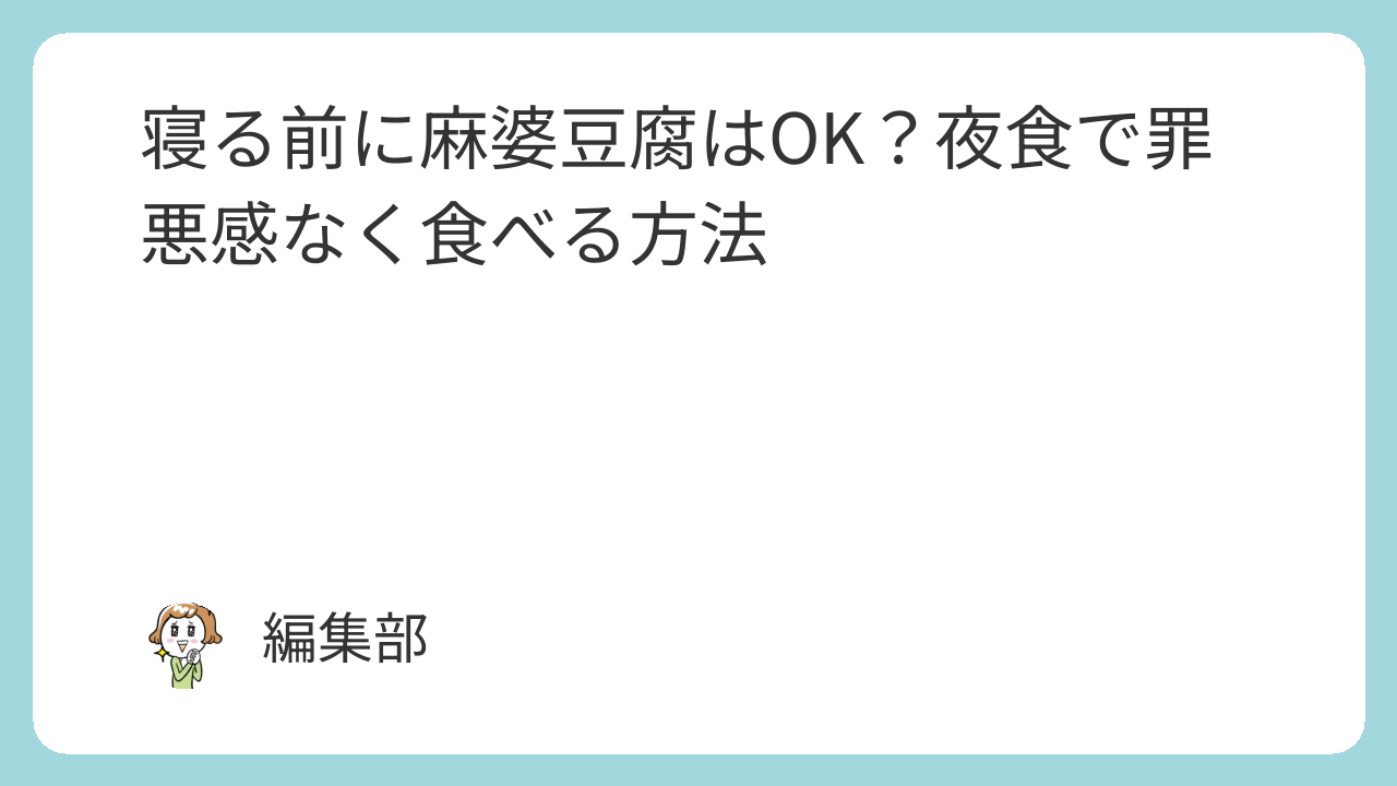 「夜食に麻婆豆腐はあり?」という疑問を持った方は、この記事をぜひ保存・シェアしてみてください。そして次に読むべき関連情報としては、「夜食におすすめの低カロリーメニュー」や「睡眠の質を下げない食べ方のコツ」、さらには「夜に食べても太りにくい食材リスト」などもチェックするとより実生活に役立ちますよ。