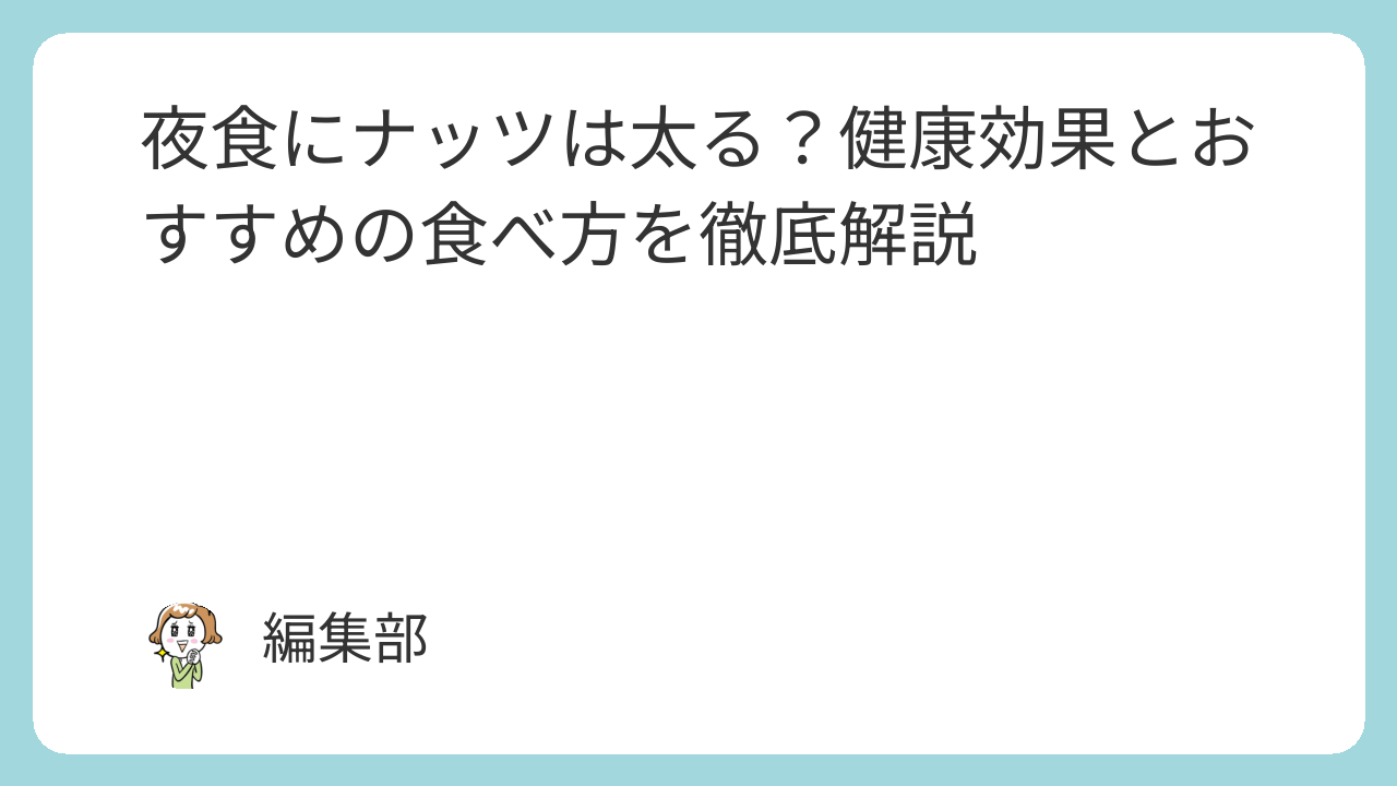 - 食べ過ぎると逆効果:脂質が多いため、適量を守ること。特に夜は活動量が少ないのでカロリーが消費されにくく、少量で満足する工夫が必要です。