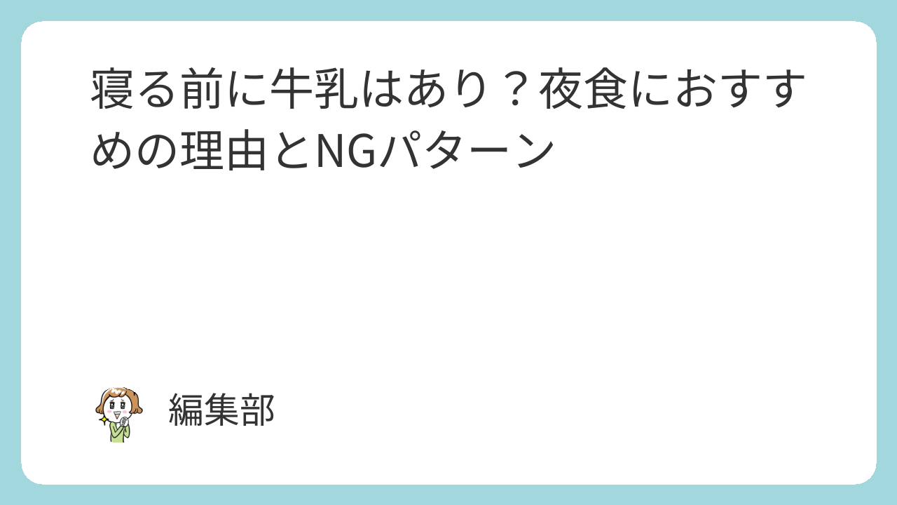 夜寝る前、ちょっと小腹が空いたときに「牛乳を飲もうかな」と考えたことはありませんか?なんとなく体に良さそうだけど「太らないかな」「寝つきは良くなるのかな」と不安に思う人も多いはずです。実際、牛乳は夜食として選ばれることが多い飲み物ですが、飲み方次第でメリットにもデメリットにもなり得ます。