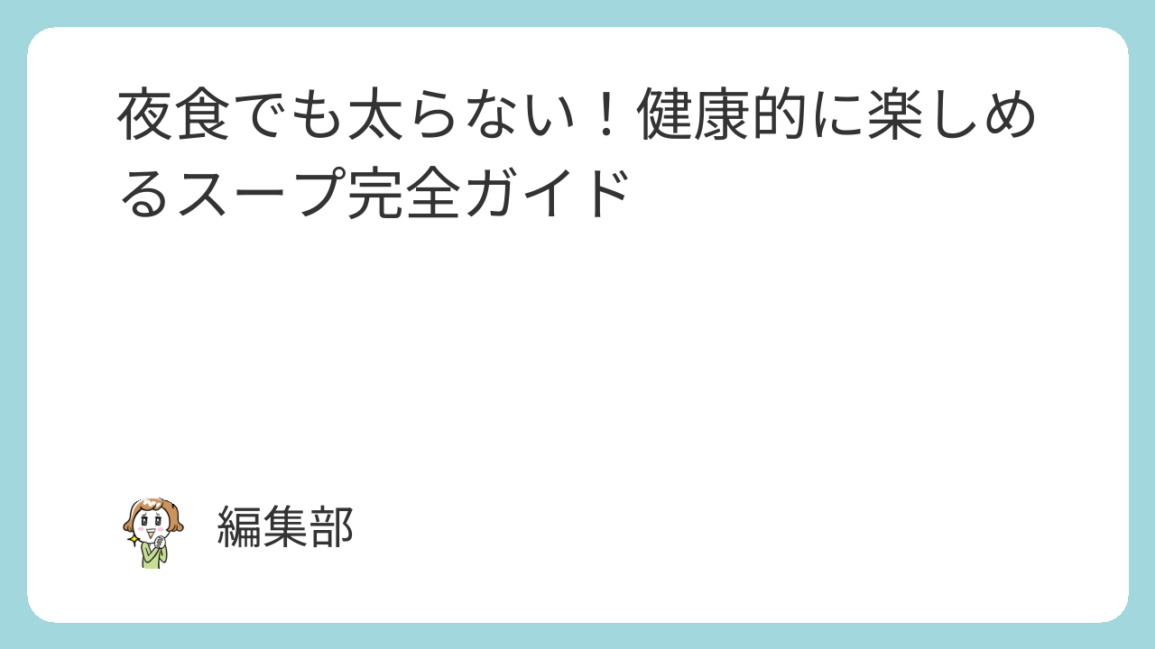 夜中に小腹がすいたとき、「何か食べたいけど太るのは嫌…」と悩むことはありませんか?特にダイエット中は、夜食を我慢するかどうかで葛藤する人も多いでしょう。実は、夜食の選び方次第で罪悪感なく楽しむことができるのです。その答えが「スープ」です。体を温めてリラックスさせるだけでなく、栄養を補給しながらも低カロリーに抑えられるのがスープの大きな魅力。