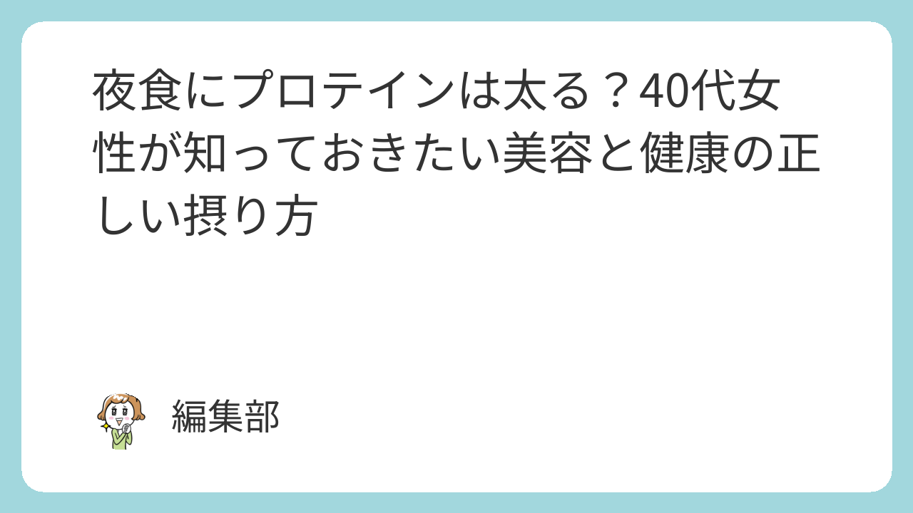 実は、正しく取り入れることで太るどころか、美容や健康にうれしい効果が期待できるのです。本記事では、40代女性に向けて「夜食プロテインの正しい摂り方」を詳しく解説します。