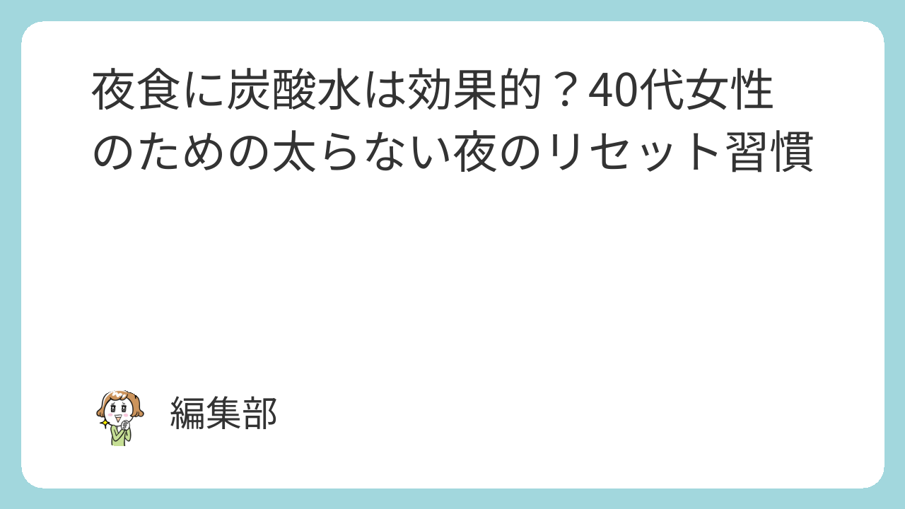 40代女性にとって夜食は「太る・肌に悪い・睡眠に影響する」という三重苦になりがちです。特に基礎代謝が低下しているこの年代では、夜食の一口が翌日の体重や肌コンディションに直結しやすく、悩みを抱えている方も多いでしょう。しかし炭酸水を上手に活用することで、無理せず食欲をコントロールでき、美容と健康の両立につながります。ポイントは「無糖の炭酸水を適量」「就寝前ではなく早めに」「必要に応じて少量のヘルシー食材をプラス」。これらを意識するだけで、翌朝のむくみや胃もたれを予防し、肌の調子や目覚めのスッキリ感に違いを感じやすくなります。さらに、夜の炭酸水習慣は単に体重管理だけでなく「自分をいたわる時間」としても有効です。お気に入りのグラスで炭酸水をゆっくり味わうことで、心身をリセットし、気持ちよく一日を締めくくることができます。小さな工夫が習慣となれば、将来的な健康維持や美容効果にもつながるでしょう。
