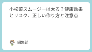 飲み物 小松菜スムージーは太る?健康効果とリスク、正しい作り方と注意点 まえがき健康志向の高まりから、スムージーを日常的に飲む人が急増しています。特に野菜や果物を気軽に取り入れられる点が支持されており、その中でも「小松菜スムージー」は、手に入りやすく栄養価が高いことから人気の定番となっています。小松菜はビタミン... 飲み物