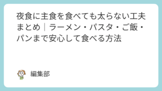 主食 夜食に主食を食べても太らない工夫まとめ|ラーメン・パスタ・ご飯・パンまで安心して食べる方法 夜にラーメンやパスタ、おにぎりやパンを食べたくなることってありませんか?でも「こんな時間に主食を食べたら太るかも…」と罪悪感を感じてしまう方も多いはず。実は、主食も工夫次第で夜食として楽しめるんです。このページでは、ラーメン・パスタ・ご飯・... 主食
