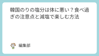 惣菜・家庭料理 韓国のりの塩分は体に悪い?食べ過ぎの注意点と減塩で楽しむ方法 韓国のりの魅力と気になる塩分韓国のりは、ごま油の香ばしさとほどよい塩気が絶妙に組み合わさり、ご飯のお供やお酒のおつまみとして老若男女から愛されている人気食品です。特に小さなパックに小分けされているものが多く、手軽に持ち運べてすぐに食べられる... 惣菜・家庭料理